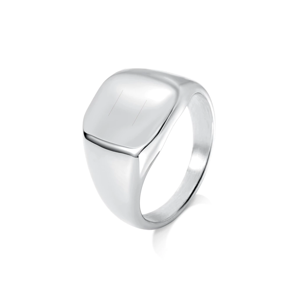 El Anillo Femenino Signet Plata Personalizable para Tres Letras es una pieza sofisticada y llena de significado. Con la posibilidad de grabar hasta tres letras, números o símbolos, te permite llevar contigo iniciales importantes, una palabra especial o un símbolo representativo.