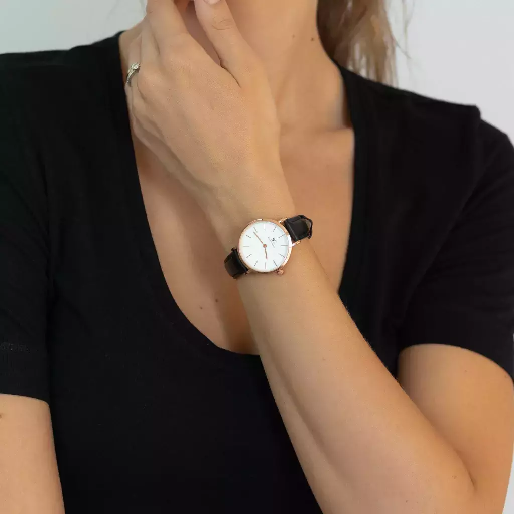 O design minimalista do Murray com um mostrador branco e com a pulseira preta é uma combinação emocionante e elegante.