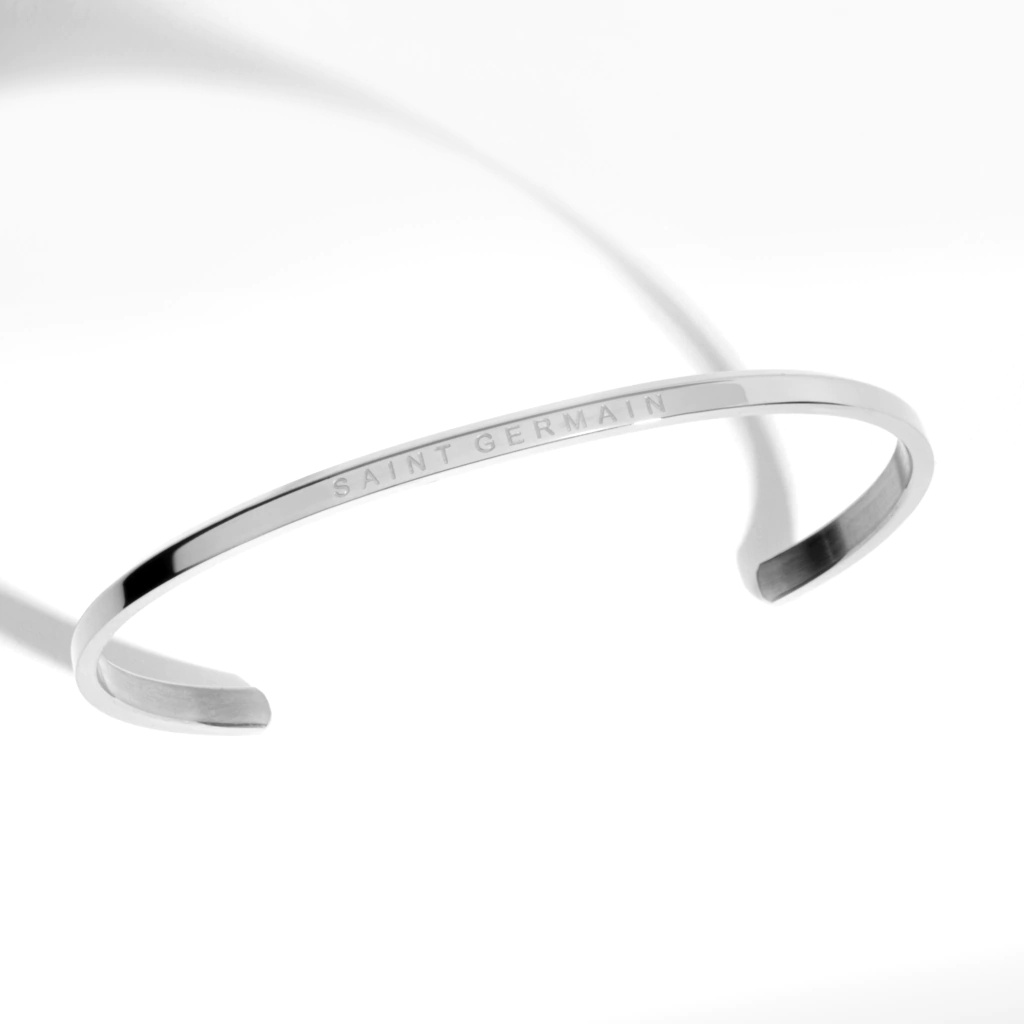 Nosso clássico bracelete prateado de PI aço inoxidável foi desenhado para refletir a beleza cativante dos nossos relógios minimalistas. Descontraído mas elegante, a estética do bracelete é uma verdadeira celebração da execução perfeita por trás de todos os designs atemporais da Saint Germain