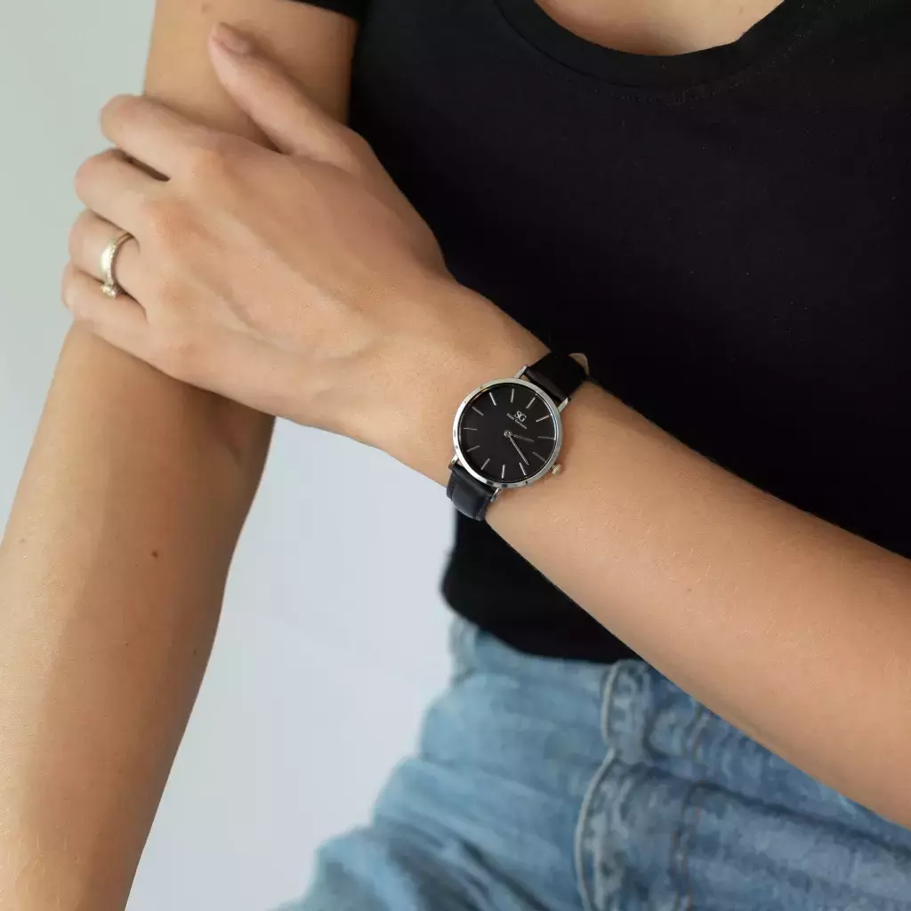 O design minimalista do Murray com um mostrador preto e com a pulseira preta é uma combinação emocionante e elegante.