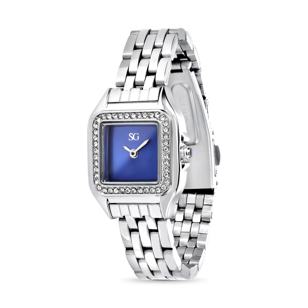 O Clássico Vintage Prata 22mm - Limitado combina elegância moderna e sofisticação clássica em um design que impressiona nos detalhes. Sua caixa quadrada com cristais cravejados reflete brilho e requinte na medida certa, enquanto o fundo azul metálico adiciona um toque de exclusividade e contraste refinado. Um acessório que une luxo discreto, versatilidade e estilo atemporal — perfeito para elevar qualquer produção com naturalidade e bom gosto.