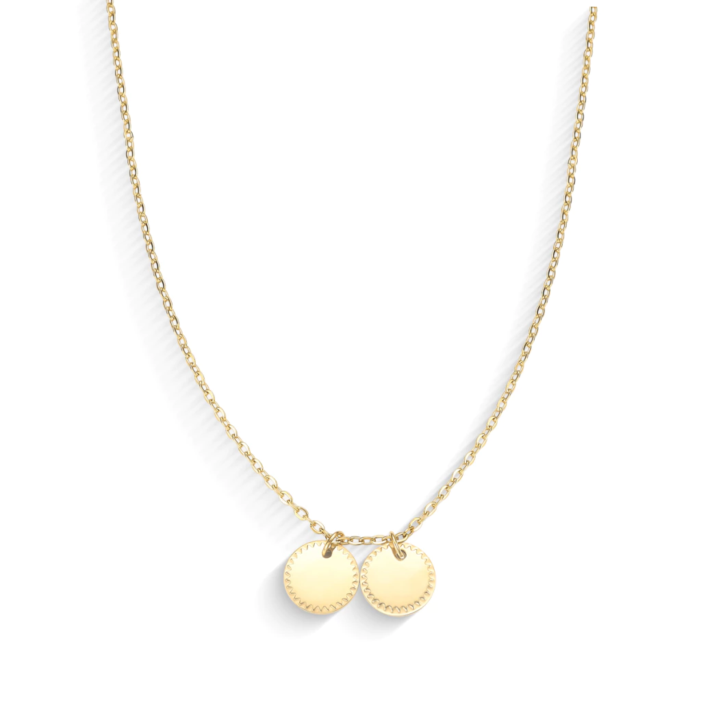 Colar Dourado com Duas Moedas Personalizáveis – Grave 2 Letras, Números ou Símbolos