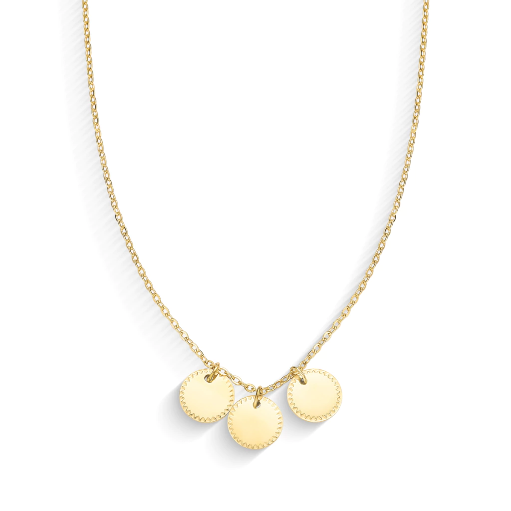 Colar Dourado com Três Moedas Personalizáveis – Grave 3 Letras, Números ou Símbolos
