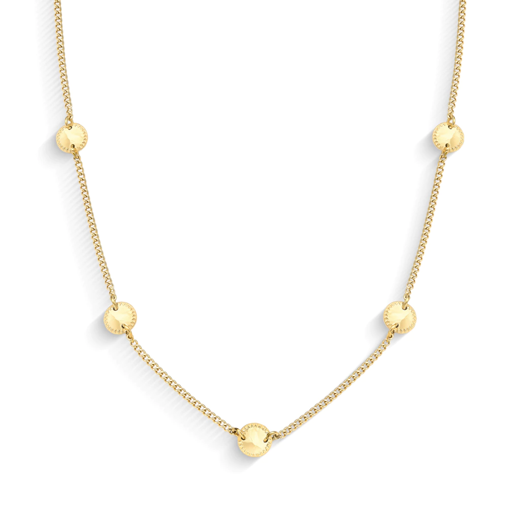 Colar Feminino Dourado com Cinco Medalhas Personalizáveis – Uma Joia Cheia de Significado