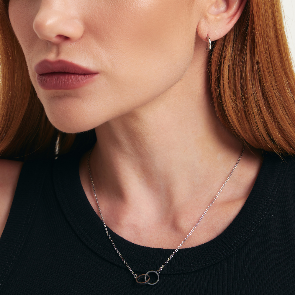Garanta já o seu Colar Prata com Elos Entrelaçados e leve seu estilo a outro nível com essa semijoia prata cheia de atitude.