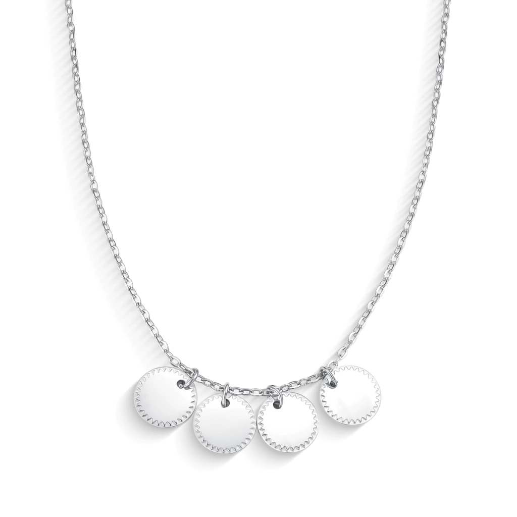 Colar Prata com Quatro Moedas Personalizáveis – Grave 4 Letras, Números ou Símbolos