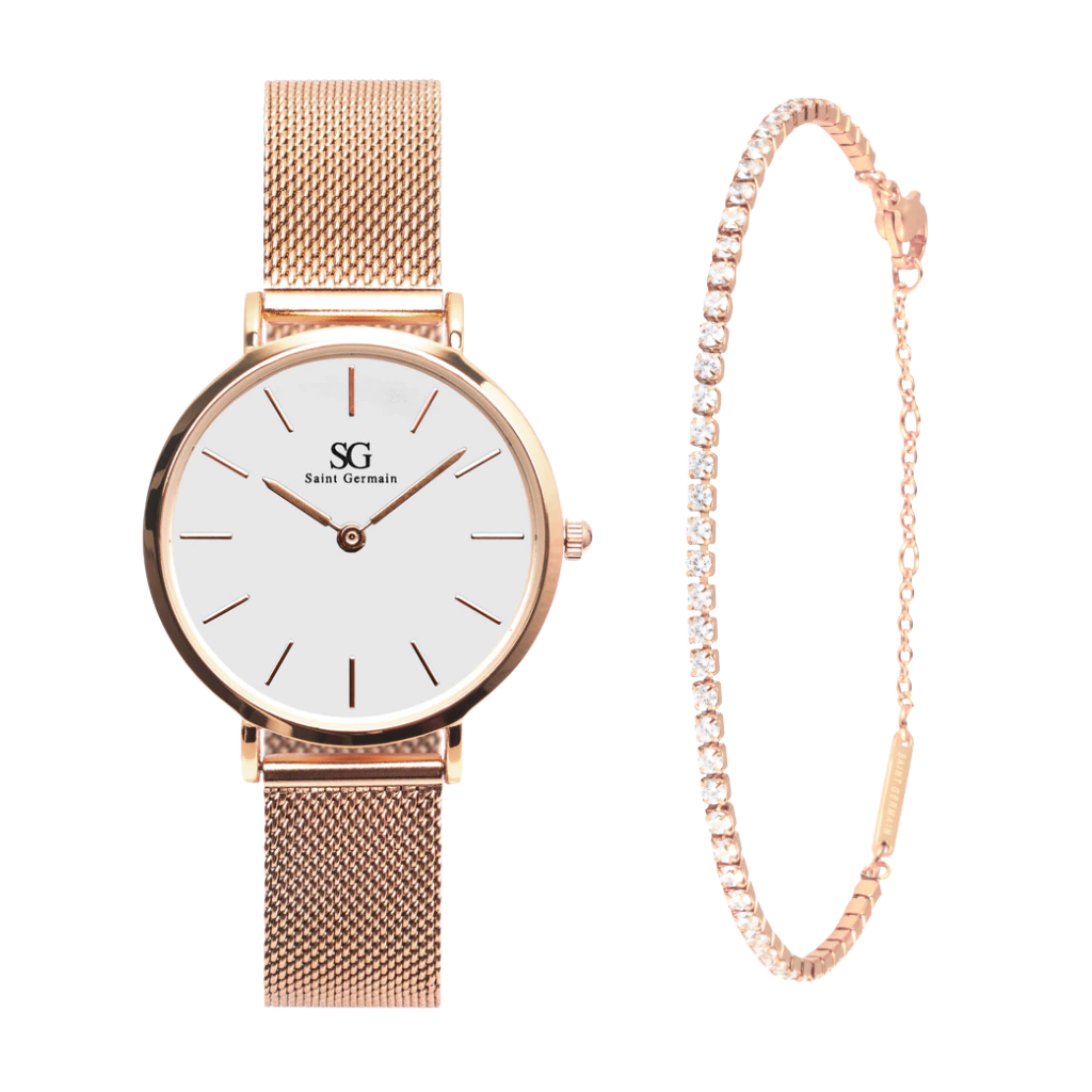 O Kit inclui o Relógio Nolita Rosé Gold de diâmetro, vidro com mineral endurecido com alta resistência + Pulseira Riviera Rosé+ Caixa de Presente.