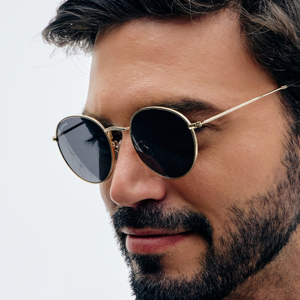Óculos de Sol Redondo Lenox Black Gold — Elegância Retrô e Estilo Atemporal
