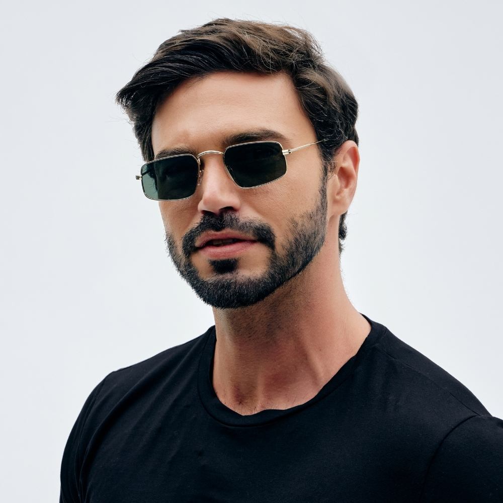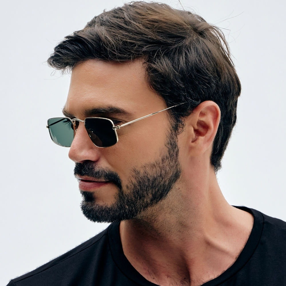 Óculos de Sol Geométrico Hylan Green Gold — Minimalismo Contemporâneo com Proteção Total