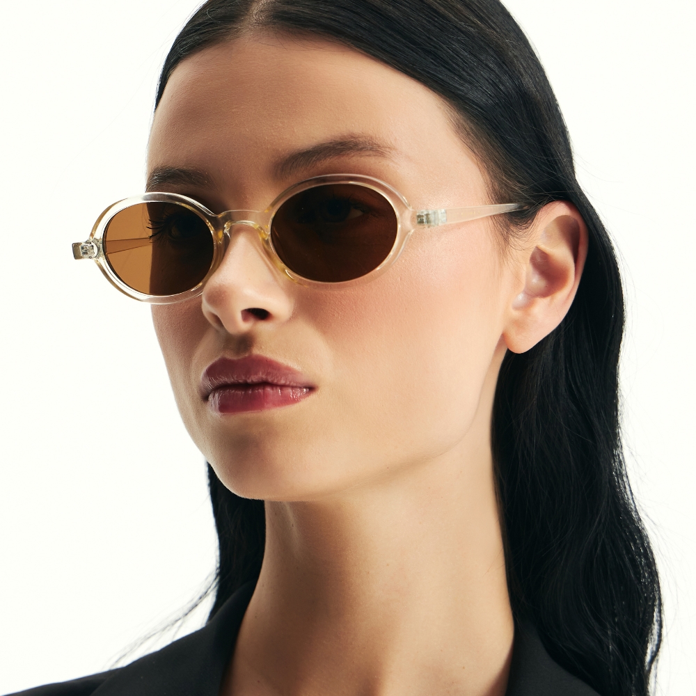 Óculos de Sol Oval Nice Champagne — Elegância sutil com lentes marrons e visual retrô