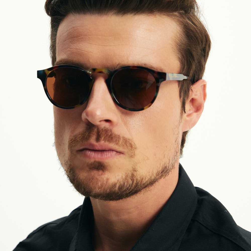 Com design redondo e acabamento exclusivo em estampa Tortoise Aquamarine, este óculos de sol une autenticidade, modernidade e elegância retrô. Sua combinação de tons terrosos com detalhes azulados cria um visual artístico que valoriza diferentes estilos e ocasiões.