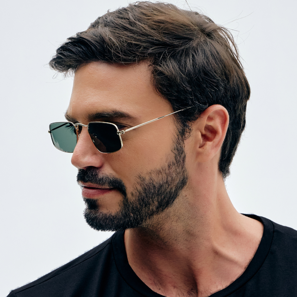 Óculos de Sol Retangular Tom Dourado — Sofisticação minimalista e design marcante
