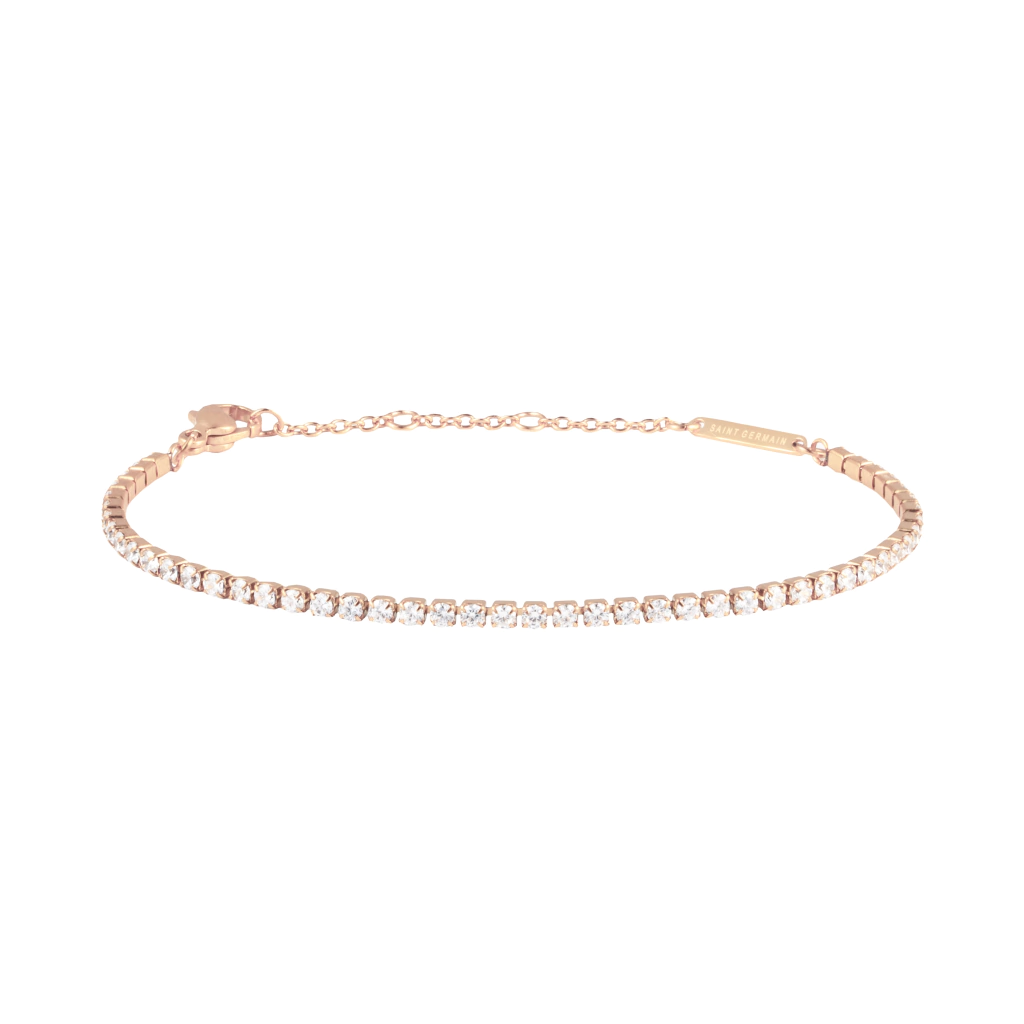 Nossa pulseira Riviera Rosé Gold é a escolha perfeita para quem busca sofisticação e durabilidade. Ela traz a união entre a elegância discreta do aço inoxidável e o brilho sutil dos cristais. A peça possui 2mm de espessura, perfeita para complementar nossos relógios minimalistas e criar um visual refinado e cheio de personalidade.