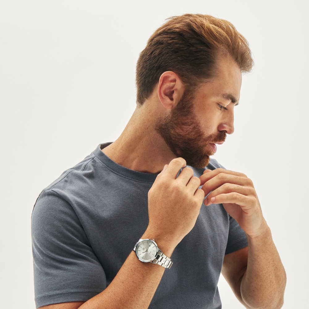 Além do movimento de quartzo de alta precisão, o modelo conta com função de data, oferecendo praticidade e estilo para o dia a dia. Ideal tanto para eventos formais quanto para um visual casual sofisticado.
