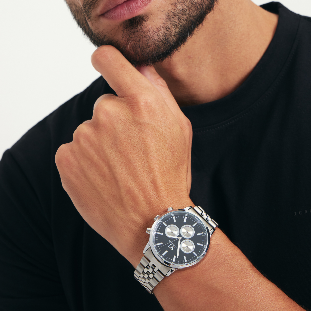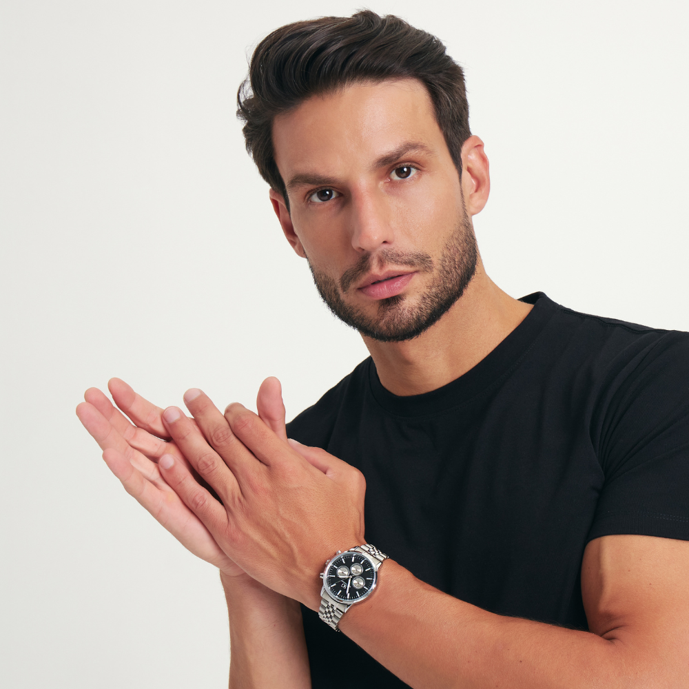 O Relógio Masculino Redondo Chrono Platine Prata com Fundo Azul é um relógio masculino que une elegância contemporânea e presença marcante. A caixa prateada combinada com o mostrador azul cria um contraste sofisticado, ideal para quem busca um relógio de pulso masculino com personalidade. Seu estilo moderno e acabamento refinado fazem deste relógio analógico uma excelente escolha para diferentes ocasiões, do trabalho aos momentos de lazer.