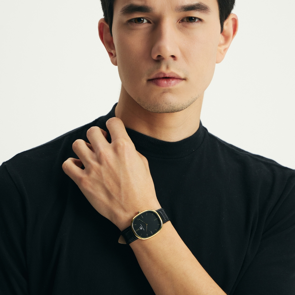 O Moncler Oval Croco Dourado, da Saint Germain, reúne elegância clássica com um formato moderno e marcante. Sua caixa dourada oval, combinada ao mostrador preto minimalista, cria um contraste sofisticado e poderoso. A pulseira de couro preta com textura croco reforça o acabamento refinado e o estilo elegante que se adapta com facilidade a diferentes ocasiões.