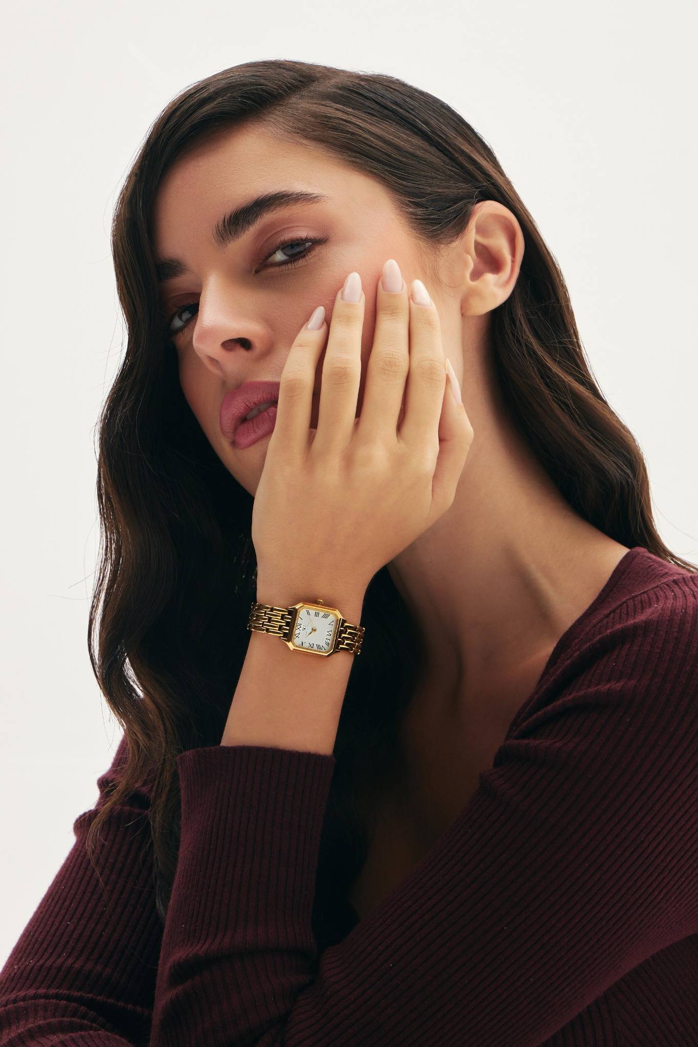 Relógio Quadrado Feminino Octavia Corrente Dourado – Um toque de joia com elegância atemporal.