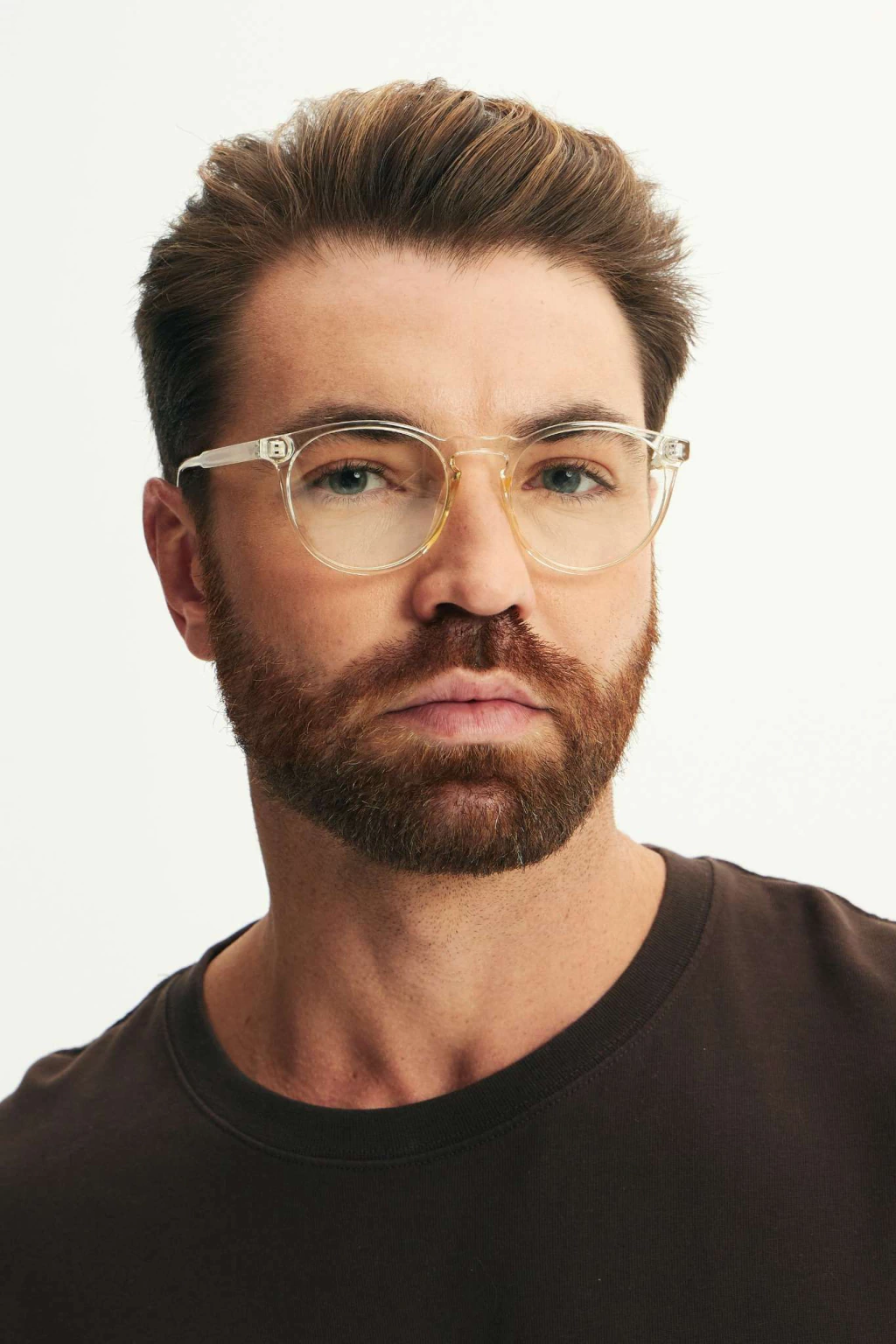 O Óculos de Grau Clássico Redondo Transparente une design clássico e contemporâneo em uma armação leve e elegante. Com cor translúcida em tom champanhe, ele é perfeito para quem busca um visual sofisticado, discreto e atual.