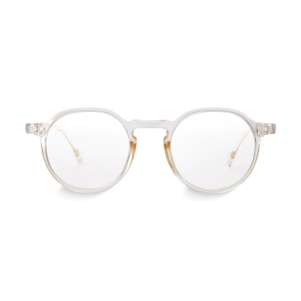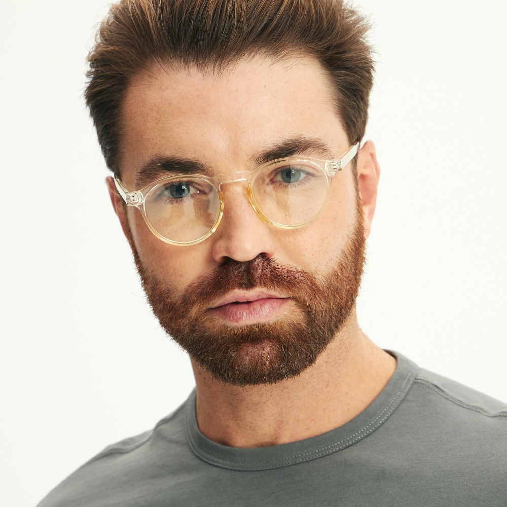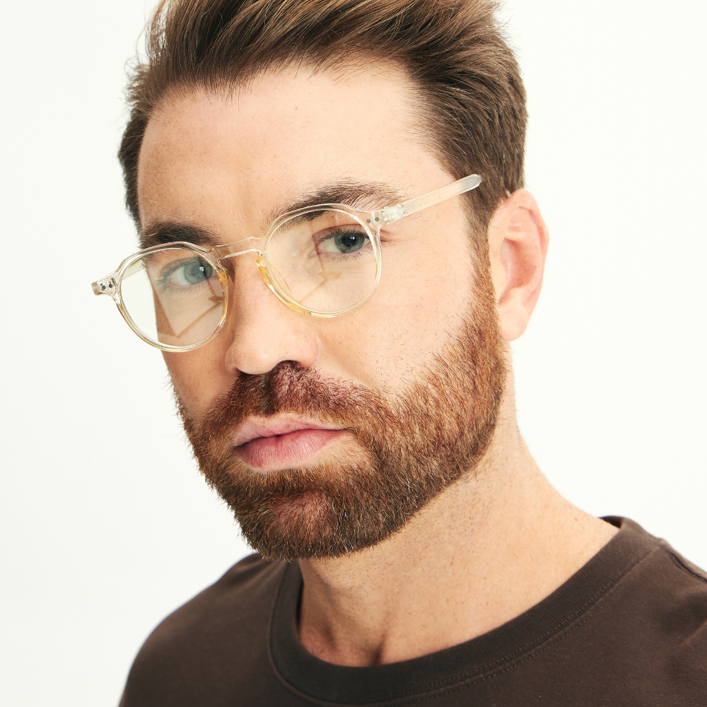 - Armação redonda em tom champanhe, sofisticada e versátil