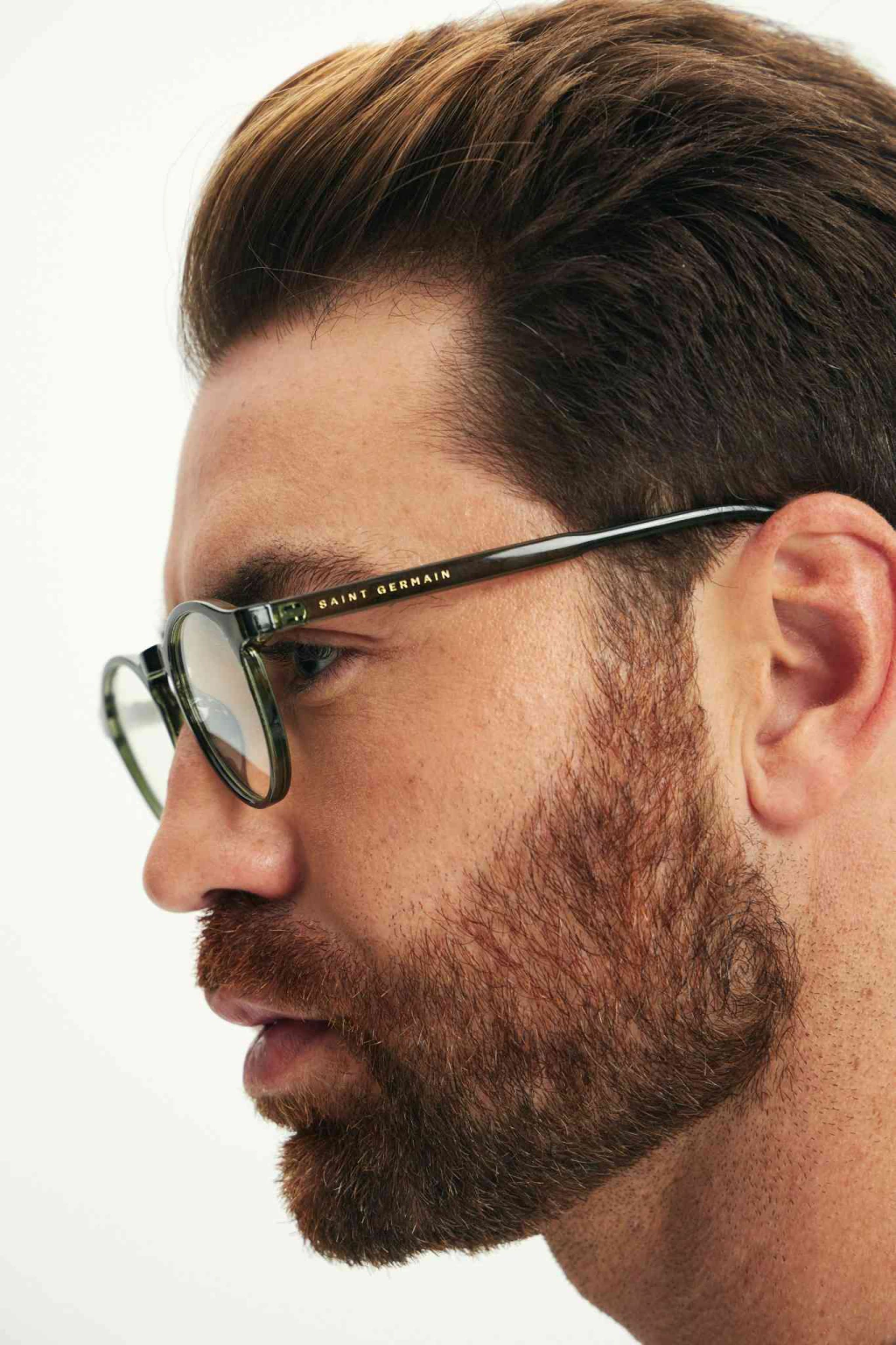 - Armação redonda em verde oliva translúcido, moderna e elegante