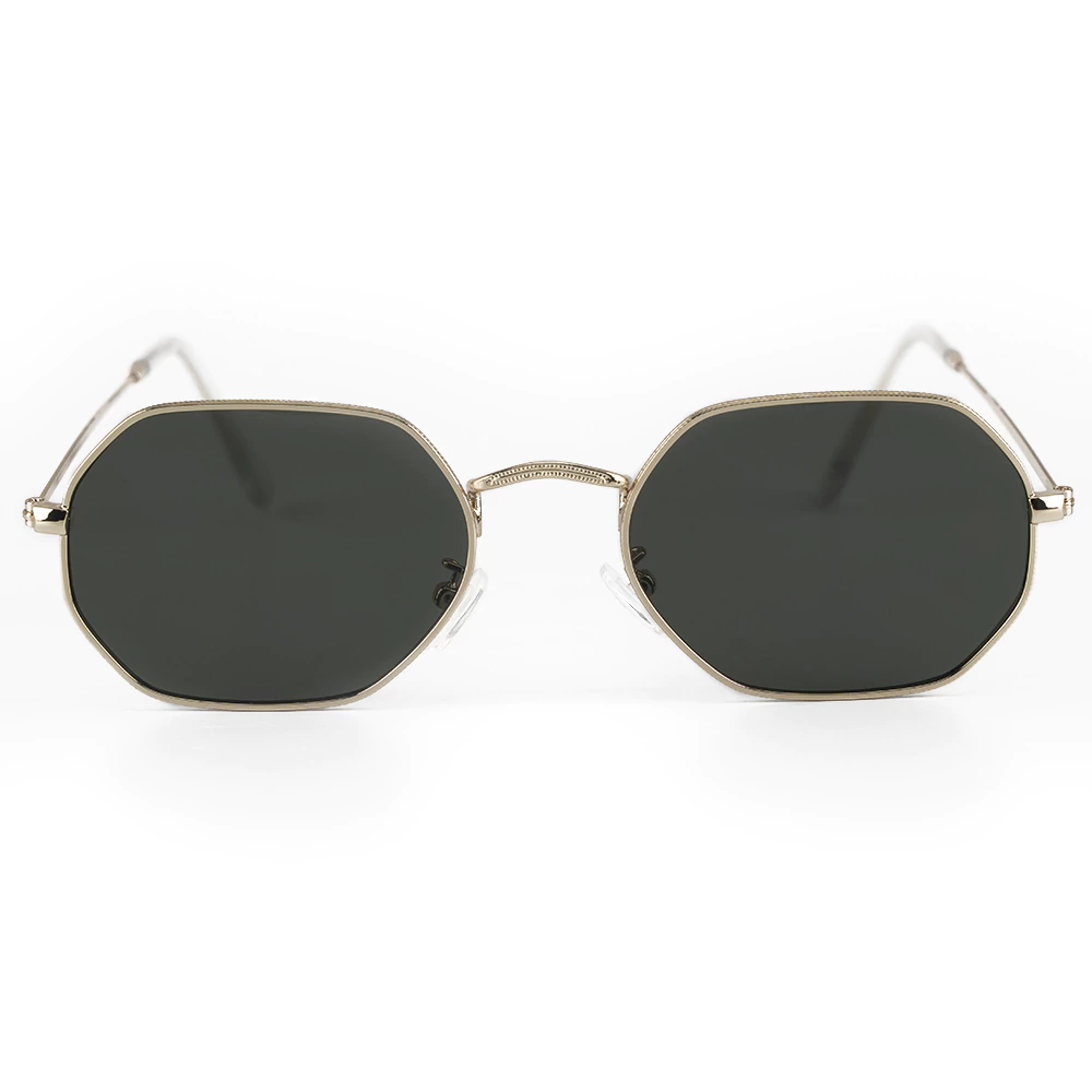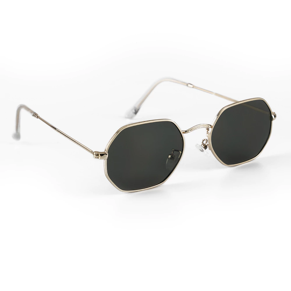 Os Óculos de Sol Geométrico Union Black Gold da Saint Germain Brand combinam o melhor do design minimalista com a sofisticação do dourado. Sua armação metálica dourada com lentes pretas intensas cria um visual imponente, moderno e refinado — perfeito para quem valoriza elegância e originalidade.