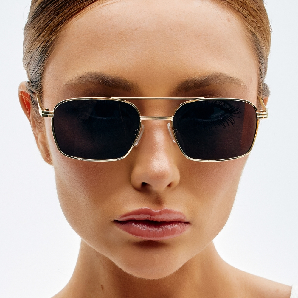 Os Óculos de Sol Quadrado Smith Black Gold da Saint Germain Brand combinam elegância, atitude e sofisticação em um só acessório. Com design quadrado estruturado, ponte dupla marcante e armação metálica dourada, este óculos de sol é a escolha perfeita para quem deseja se destacar com estilo e personalidade.