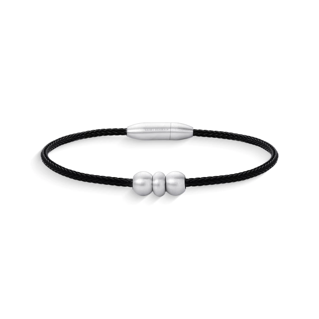 Pulseira Masculina Slim Fio de Aço Inoxidável Preto com Três Esferas – Sofisticação e Versatilidade
