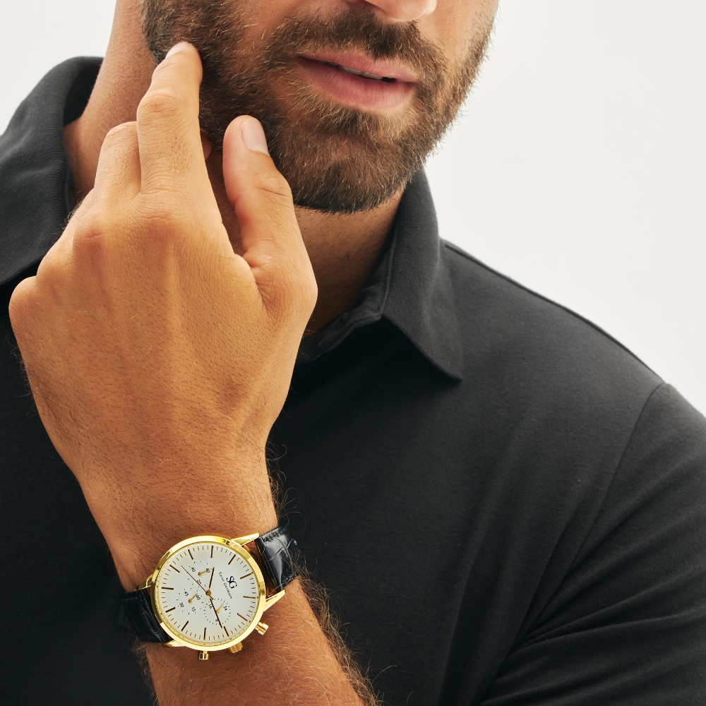 O Relógio Masculino Chrono Murray, da Saint Germain, é a escolha ideal para homens que valorizam sofisticação discreta e desempenho no dia a dia. Com caixa prateada de 42mm, mostrador preto com cronógrafo funcional e pulseira preta com acabamento elegante, este modelo é perfeito para quem busca um acessório versátil e cheio de personalidade.