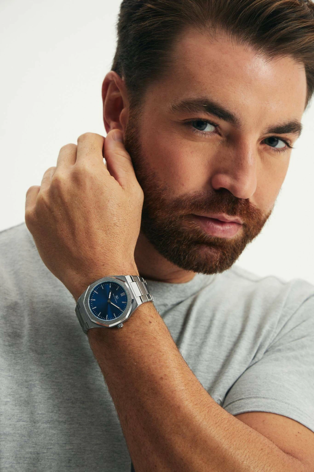 Hudson Blue Silver – Para homens que dominam o tempo com estilo.