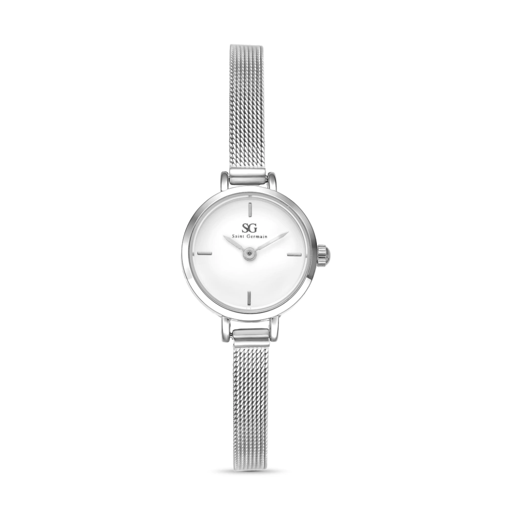 Its minimalist white dial without numbers enhances the clean and refined aesthetic — perfect for professional settings, social events, or even casual moments with a touch of sophistication. The lightweight silver mesh bracelet is comfortable and versatile, adapting smoothly to the wrist.